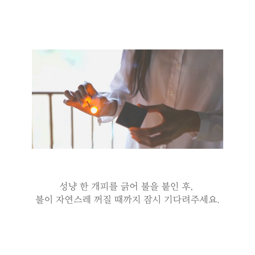 이 향 스틱을 성냥처럼 간편하게 불을 붙인 뒤