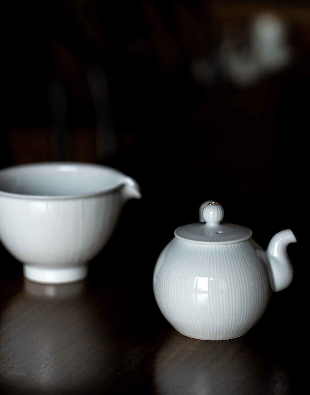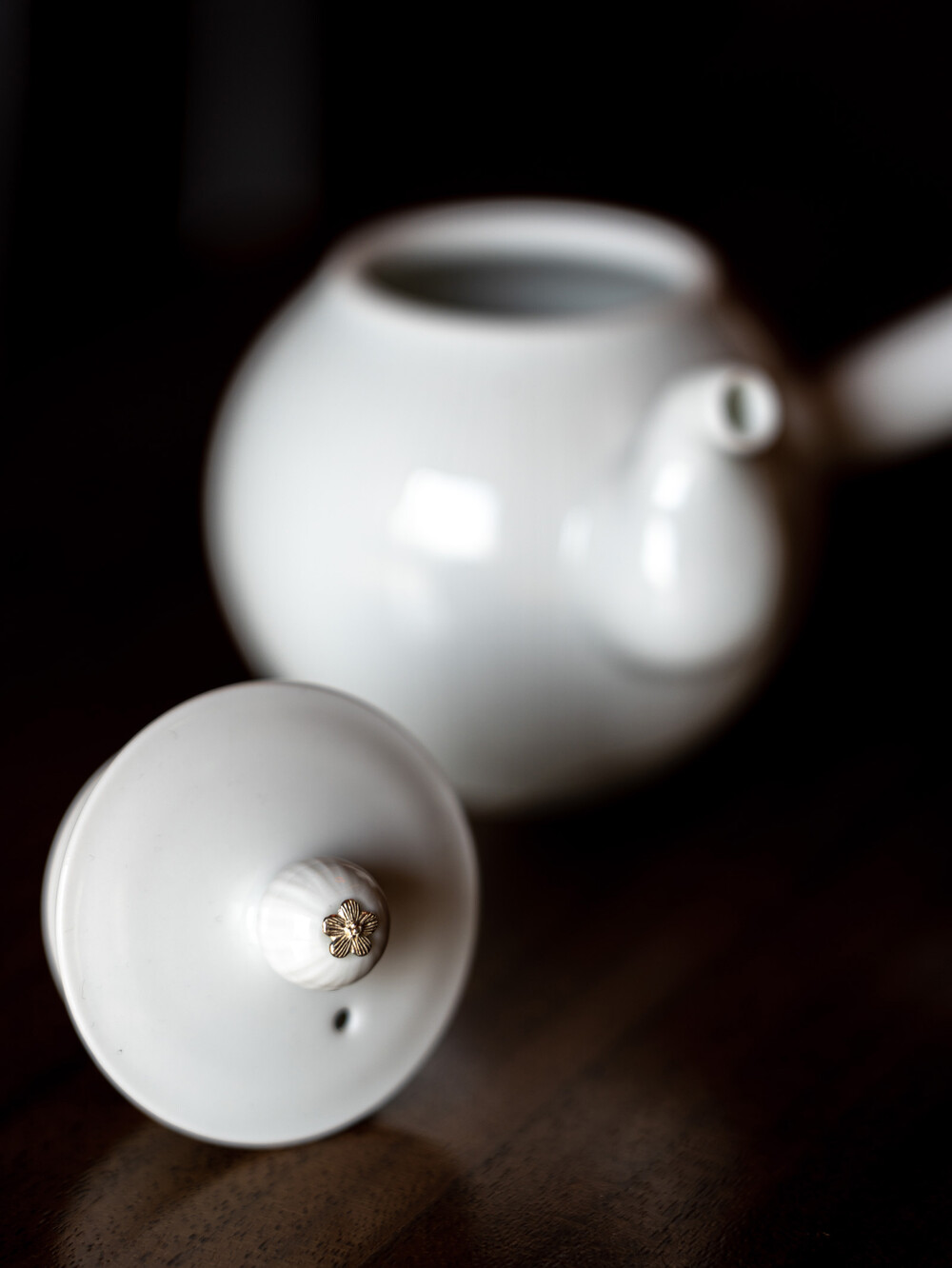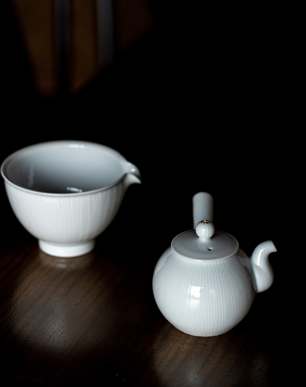 영롱한 은빛 이슬 가득 머금은 백자 다관