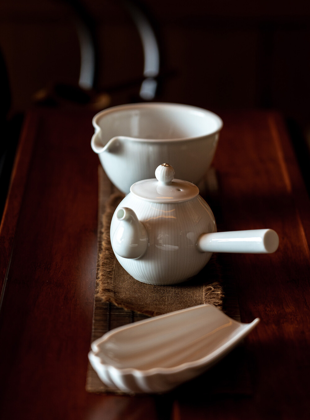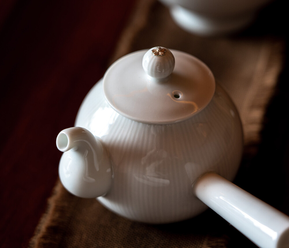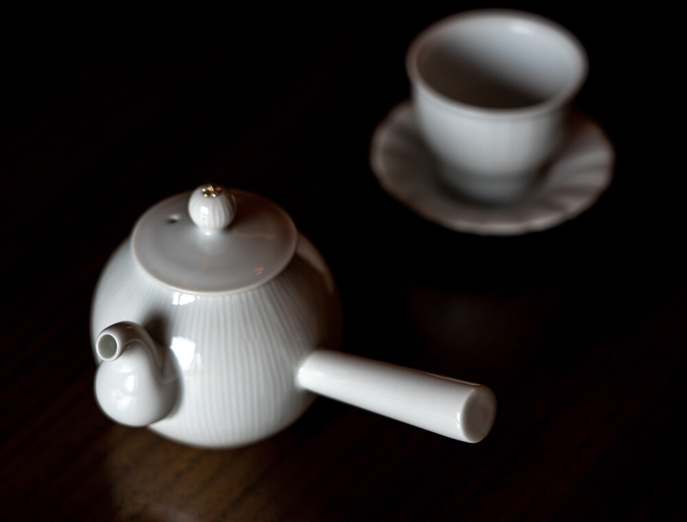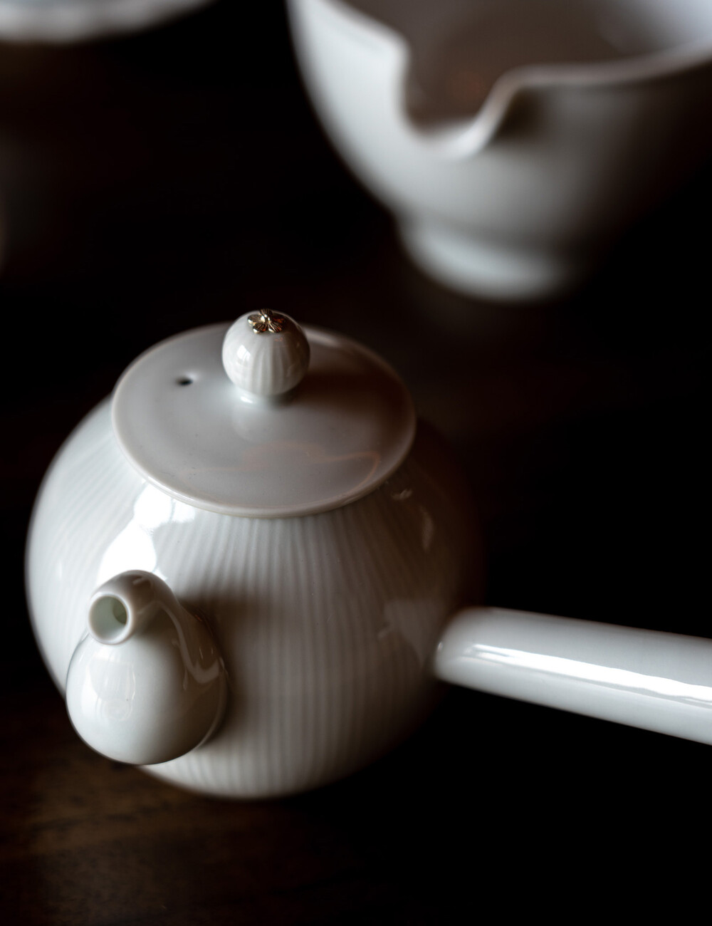 영롱한 은빛 이슬 가득 머금은 백자 다관