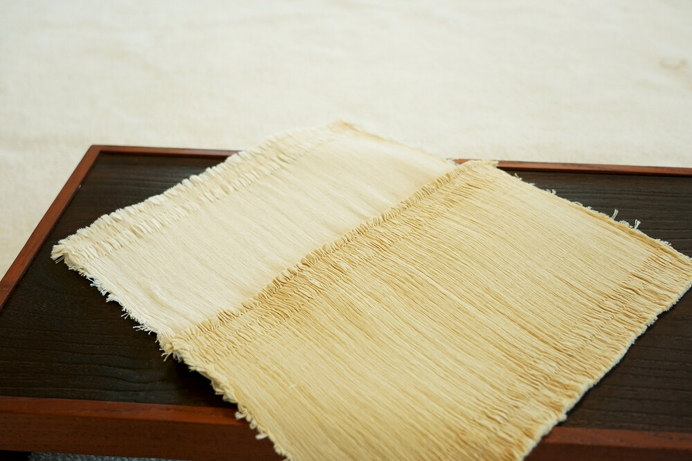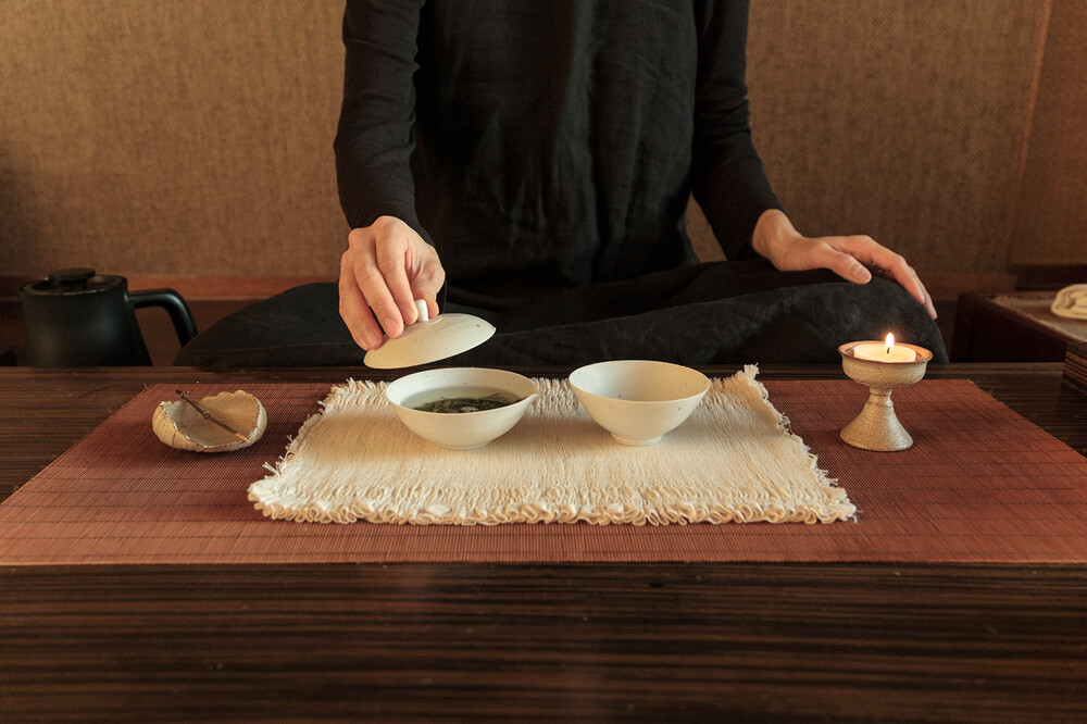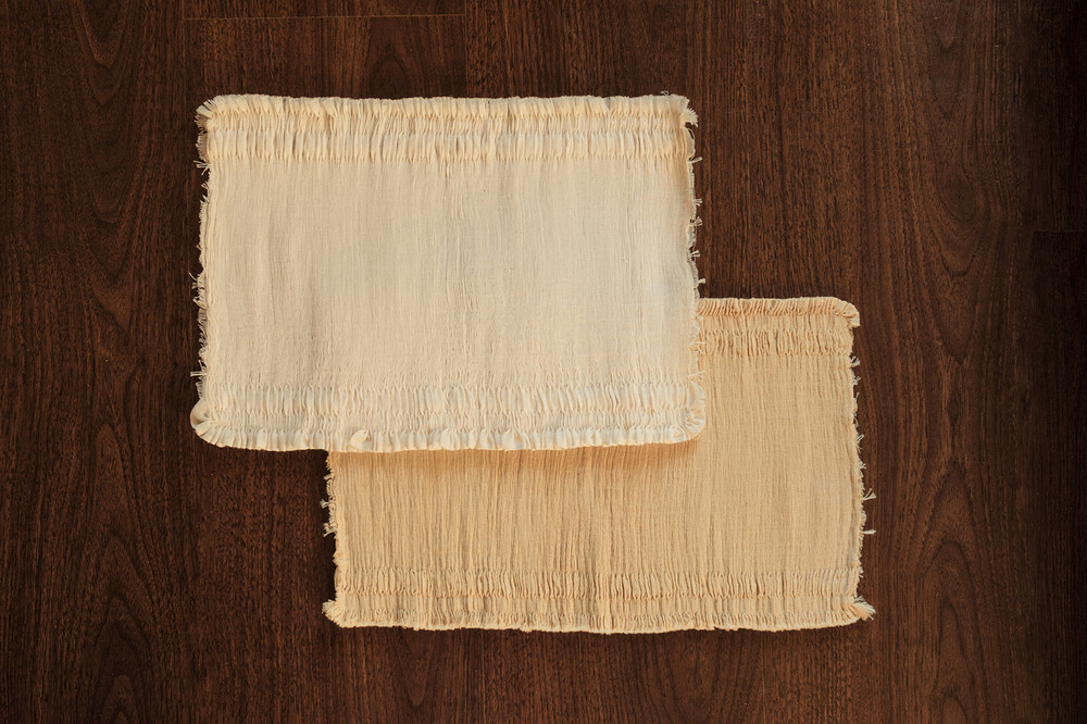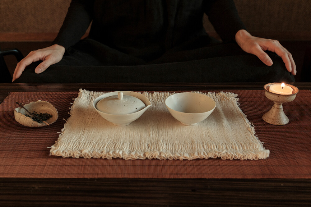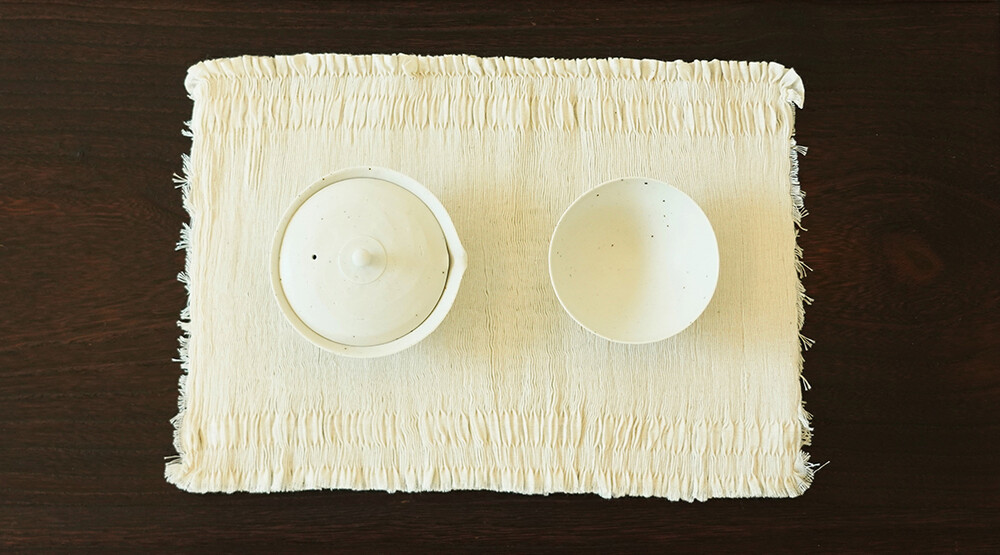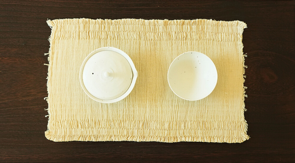 찻자리를 아우르는 <포옹의 겹>의 강화 소창 티매트로