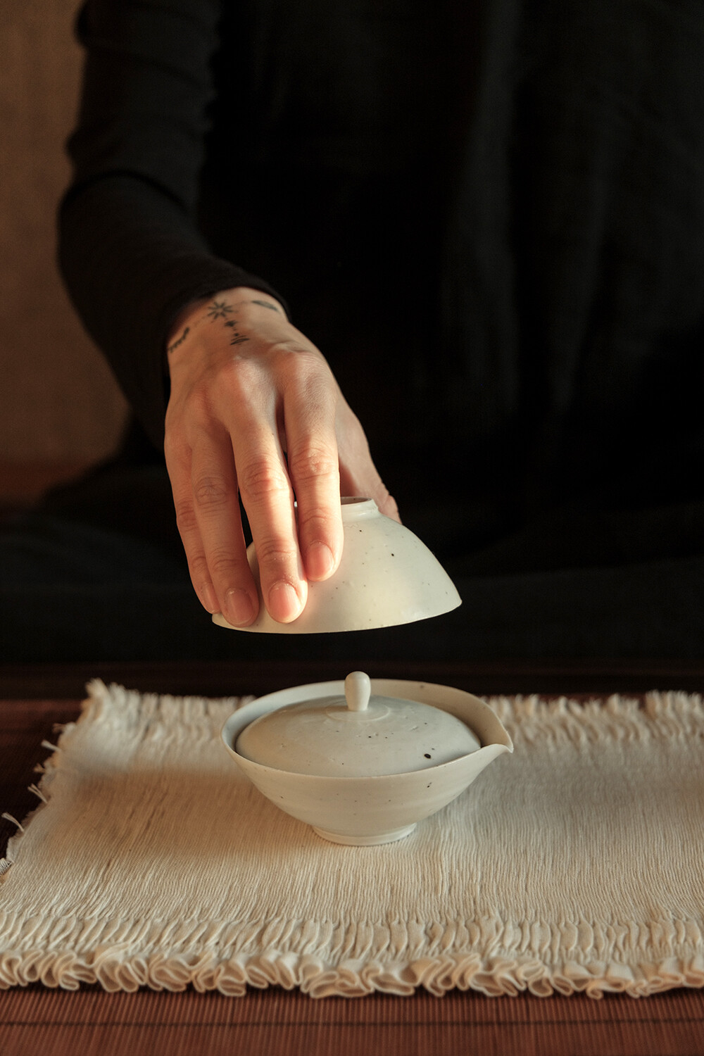 1. 티매트와 개완을 꺼내 나만의 찻자리를 준비합니다.