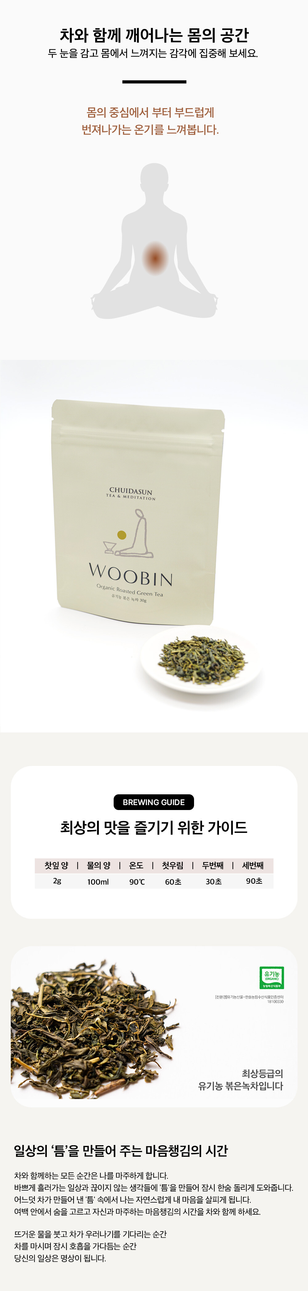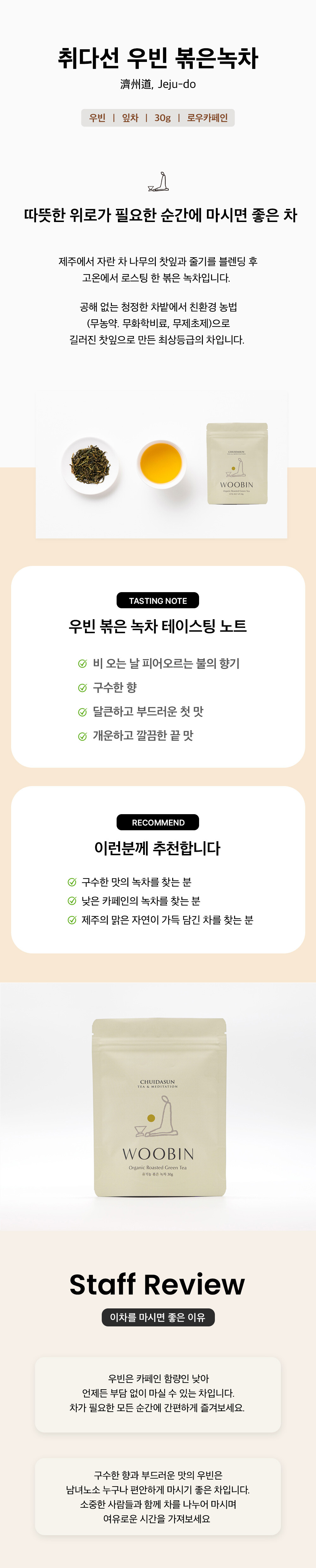 [취다선] 우빈 / 2025 유기농 볶은 녹차 / 잎차 30g
