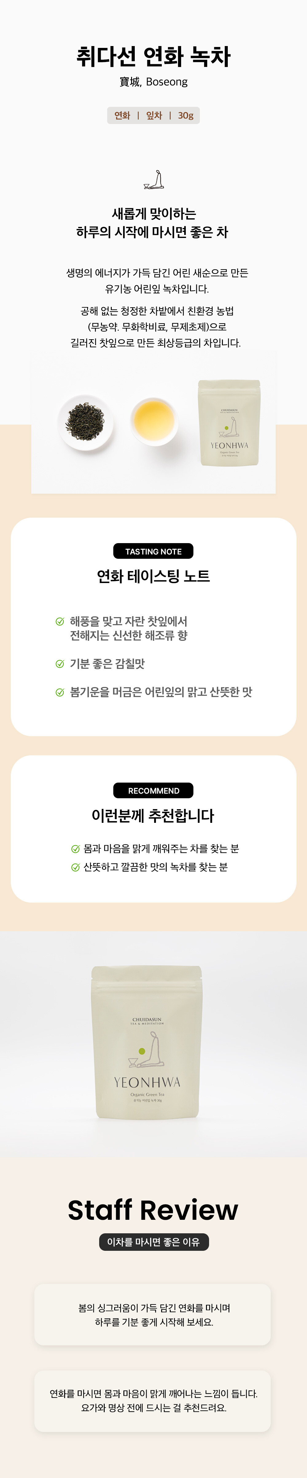 [취다선] 연화 / 2025 유기농 녹차 / 잎차 30g