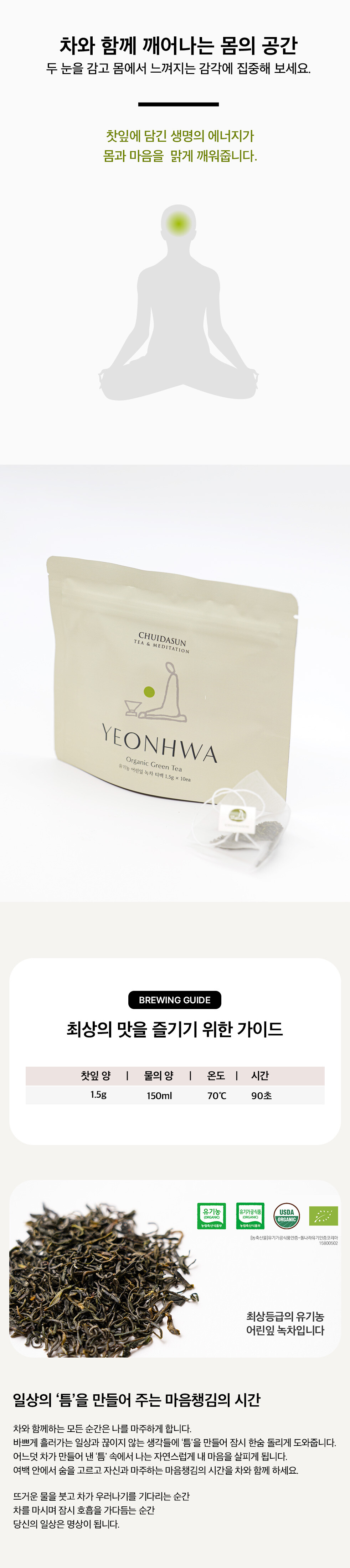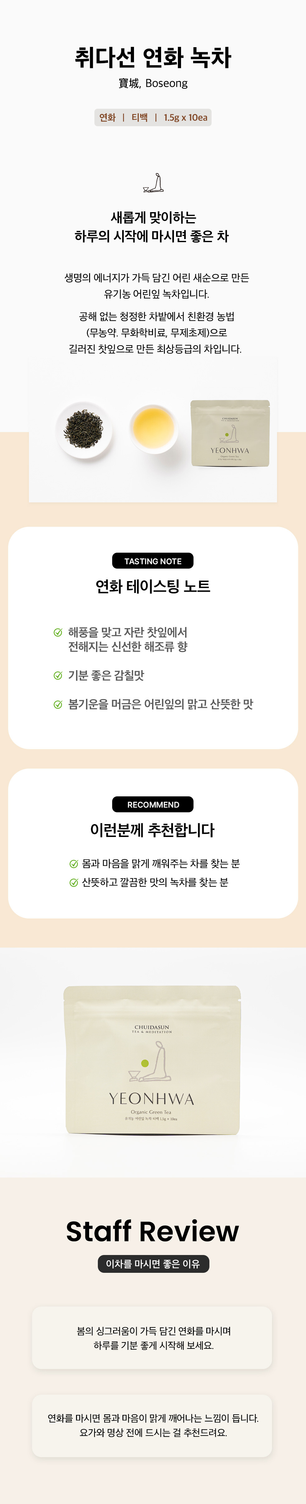 [취다선] 연화 2024 유기농 녹차 티백(10ea)